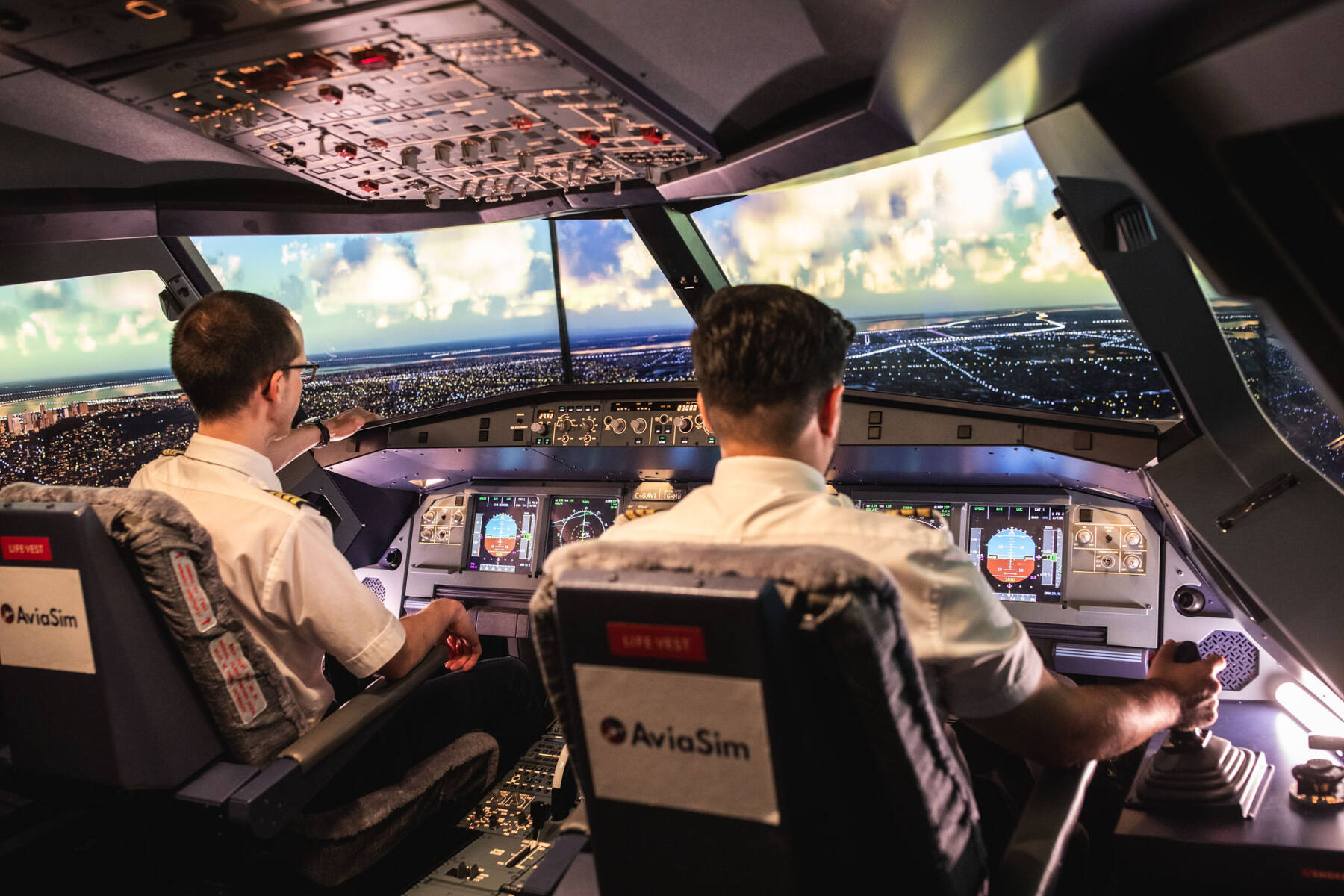 Ce simulateur reproduit fidèlement le cockpit des avions réels utilisés par les compagnies aériennes. Grâce à une technologie de pointe, une diffusion vidéo à 180° et des visuels régulièrement mis à jour, chaque vol offre une immersion totale dans les aéroports et régions survolées, avec la possibilité de voler n’importe où dans le monde.